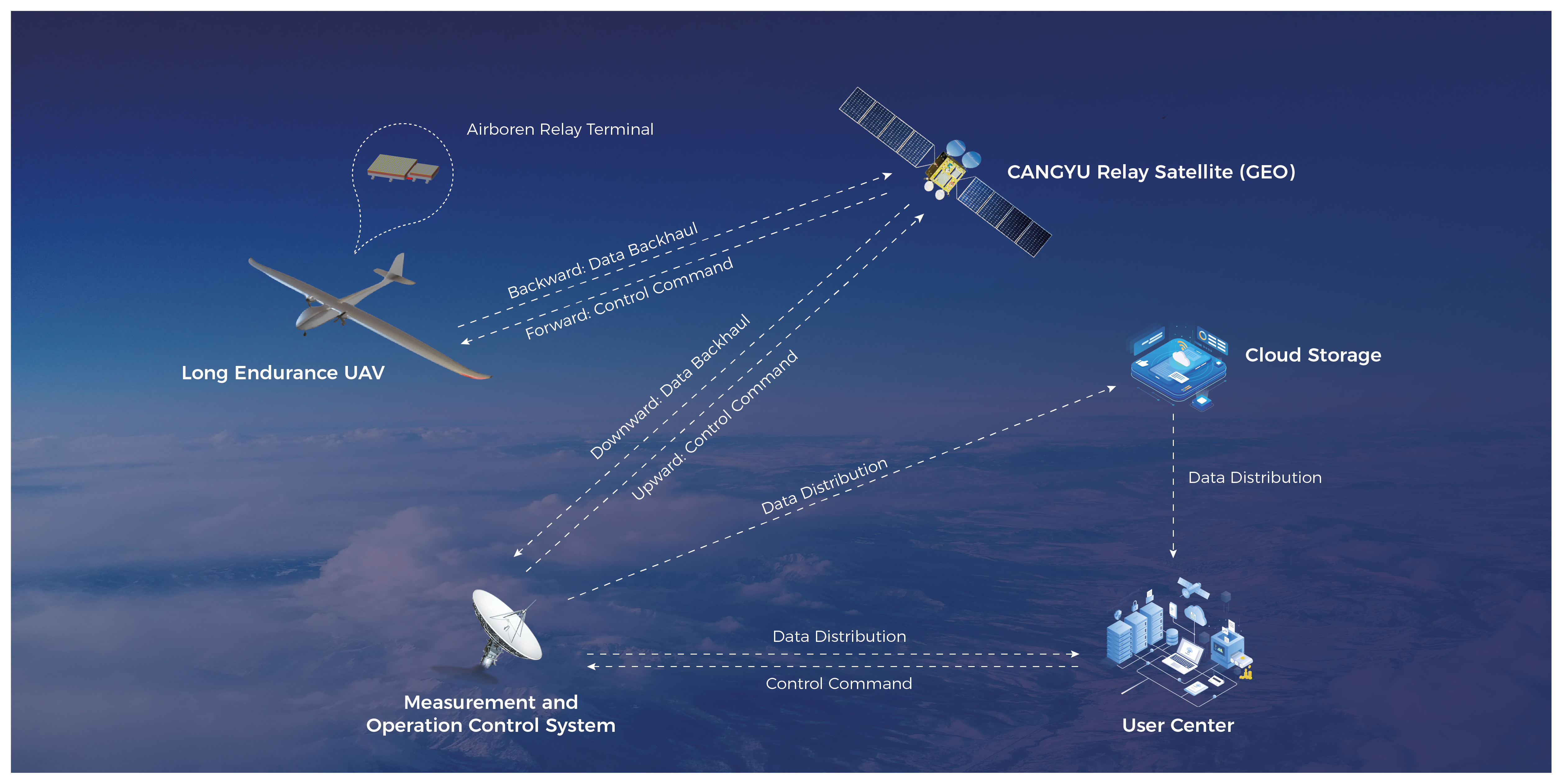 During the task execution, the environmental data and the task payload data collected by the UAV can be transferred to the ground in real time through the relay satellite, with a data transfer rate of up to 2Mbps.